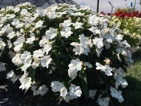 A compact, sun-loving impatiens with pristine white blooms that create a clean, luminous display in beds, borders, and containers. SunPatiens® Compact Classic White flowers continuously from spring through fall, tolerating full sun better than traditional impatiens while maintaining a uniform, lush habit.