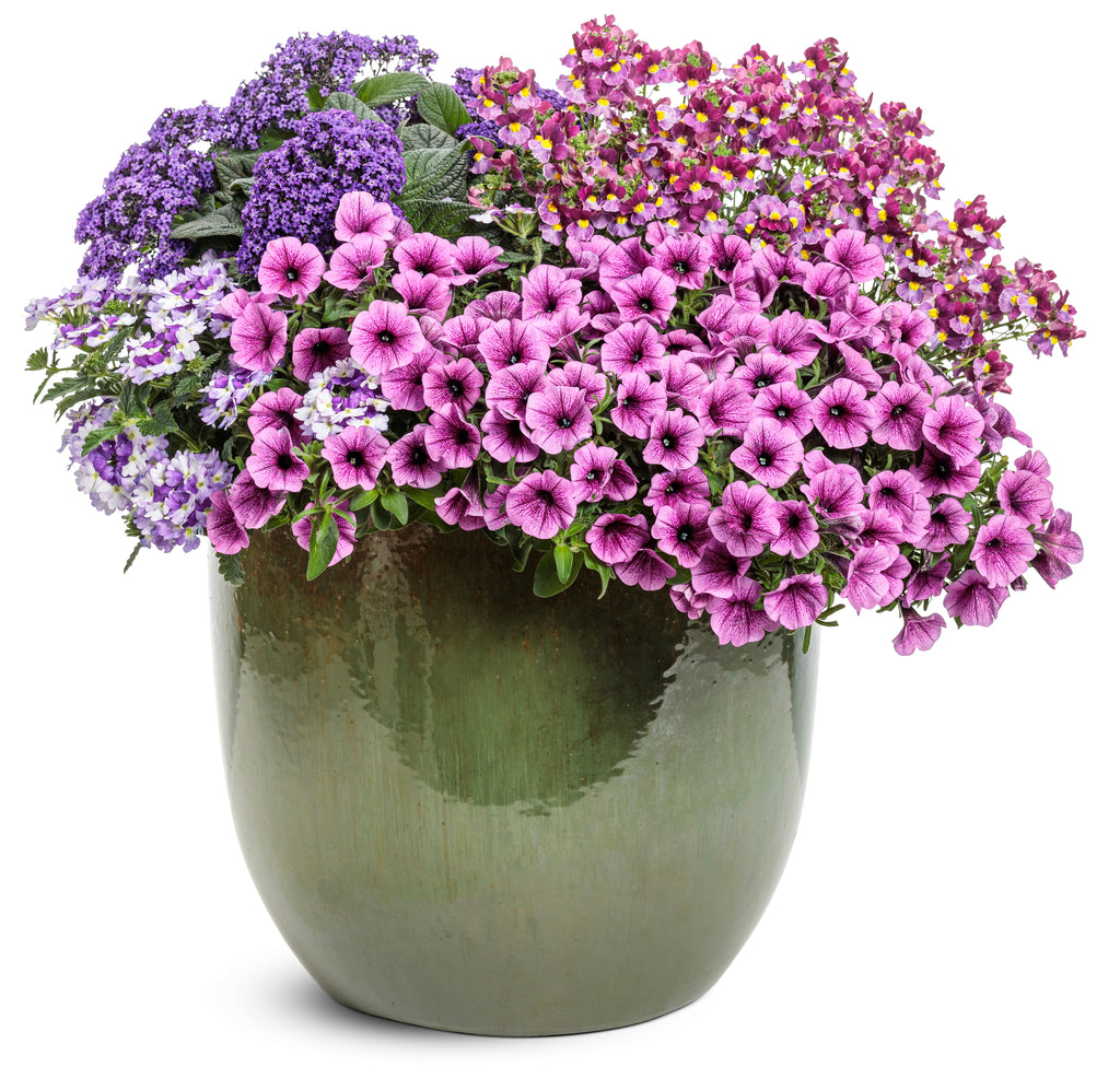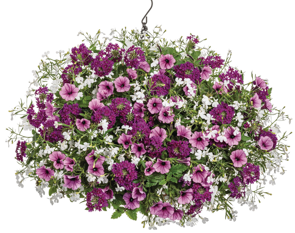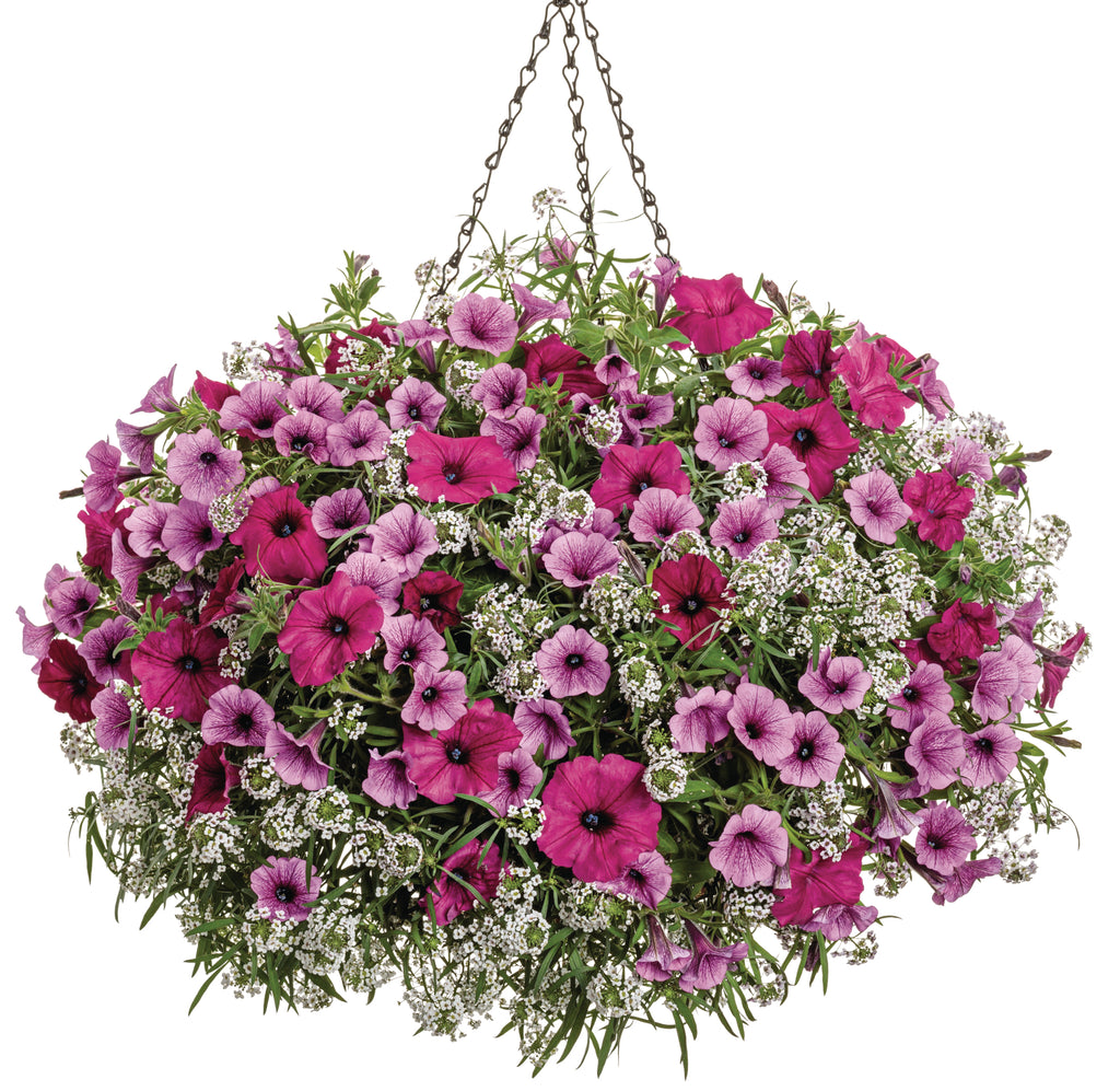 With a compact, trailing growth habit, 'Mini Vista® Plum Veined' is perfect for hanging baskets, window boxes, and garden beds, where it creates a lush cascade of color. Known for its resilience, this petunia thrives in full sun and is exceptionally heat and drought-tolerant, ensuring a continuous display of flowers from spring through fall. Easy to care for, this low-maintenance beauty is ideal for gardeners of all skill levels, adding charm and vibrancy to any outdoor space.