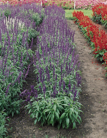 This compact, well-branched Salvia produces abundant spikes loaded with large blue flowers over a long season. Plant this one in masses to create a feeding station for hummingbirds, or add a few plants here and there at the edge of the border where you can appreciate the long season of color.