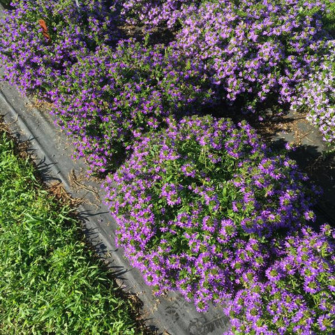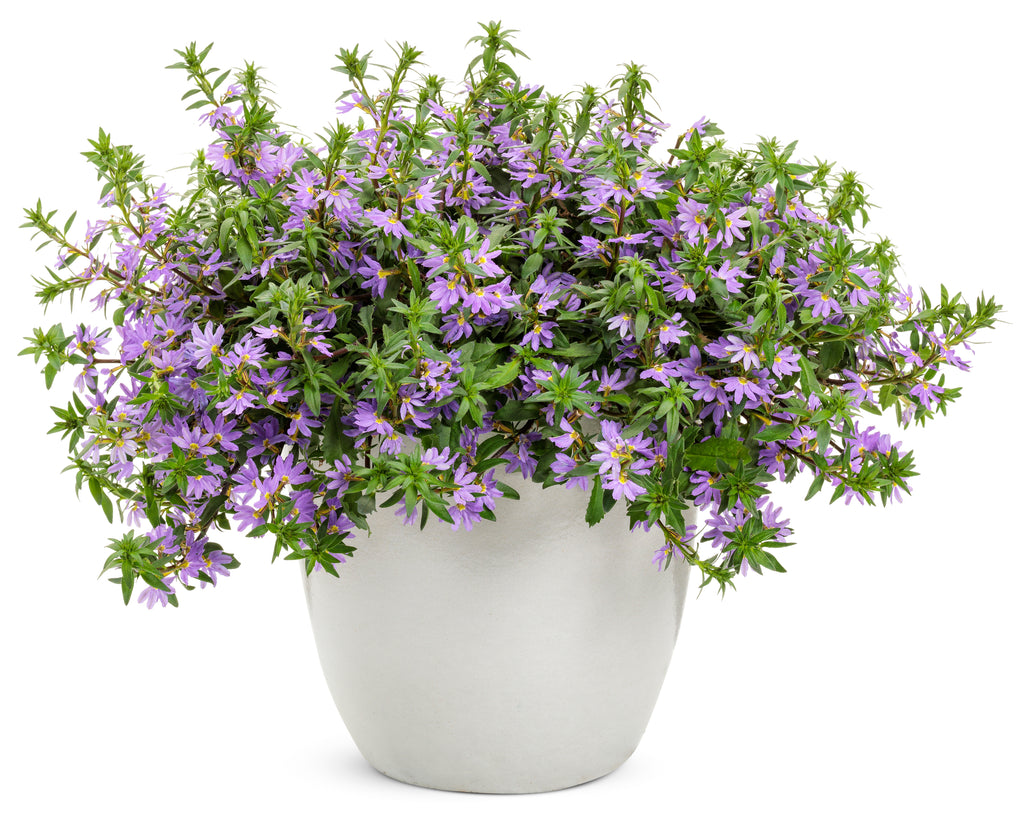 A stunning display of fan-shaped, vibrant blue flowers that bloom profusely from spring through fall. This heat-tolerant and drought-resistant plant has a trailing habit, making it perfect for hanging baskets, window boxes, and mixed containers.