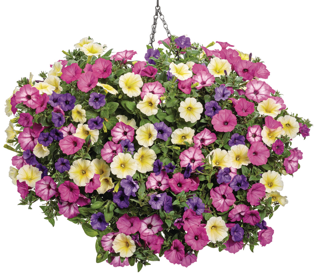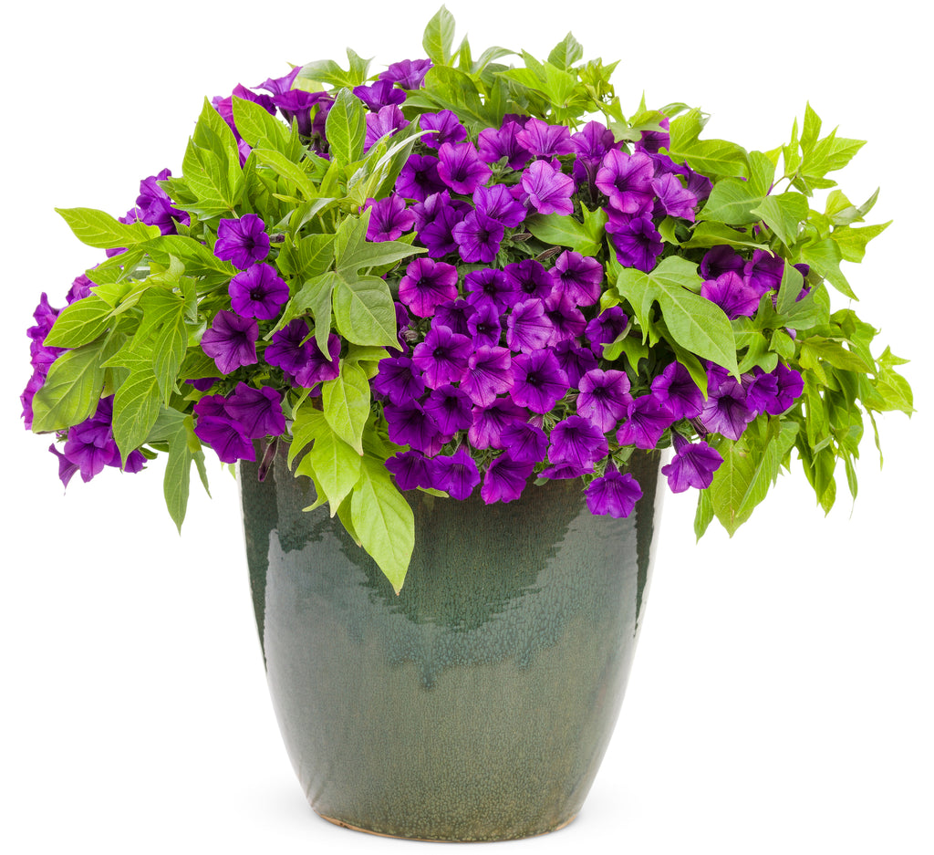 Deep purple-blue flowers cover this compact, mounding-trailing petunia, adding a striking mass of color to your garden. Its vigorous growth ensures continuous blooms from spring through frost, making it ideal for containers, hanging baskets, and landscape beds.