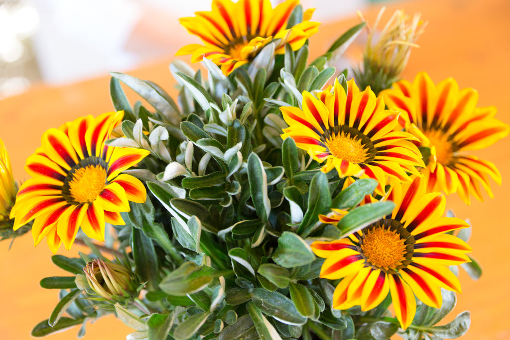 Gazanias prefer full sun and average, well-drained soil. Trimming back dead blossoms will help to encourage new blooms. Please remember, containers aren’t as drought resistant, they may need a little extra TLC and consistent watering if in containers!
