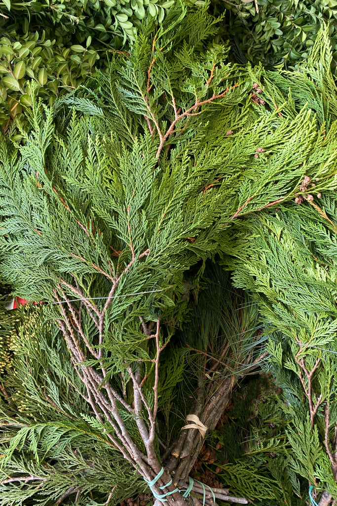 Fresh-cut from British Columbia, Cedar's feathery, scale-like foliage and warm, earthy aroma add a rustic charm to any arrangement. Its pliable branches are perfect for draping in garlands or adding texture to wreaths and centerpieces.