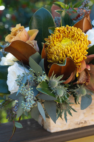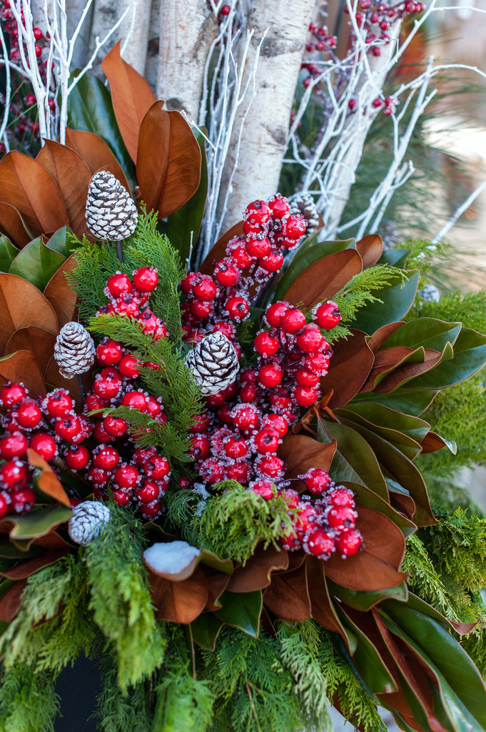 Magnolia tips add a touch of elegance to your winter arrangements. Each tip features glossy green leaves with golden undersides, providing a luxurious backdrop for seasonal décor. Magnolia tips can be used fresh in water or left to dry for long-lasting indoor displays, making them a versatile addition to porch pots and decorative planters.